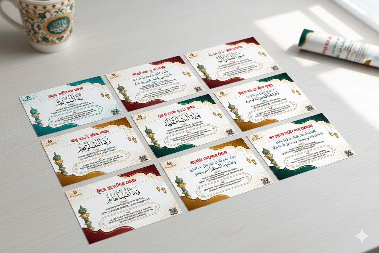 ✅ সহজ আমল: ঘরের দরজা, দেয়াল বা সন্তানদের রুমে লাগিয়ে রাখলে প্রতিদিন চোখে পড়বে এবং দ্রুত মুখস্থ হয়ে যাবে।